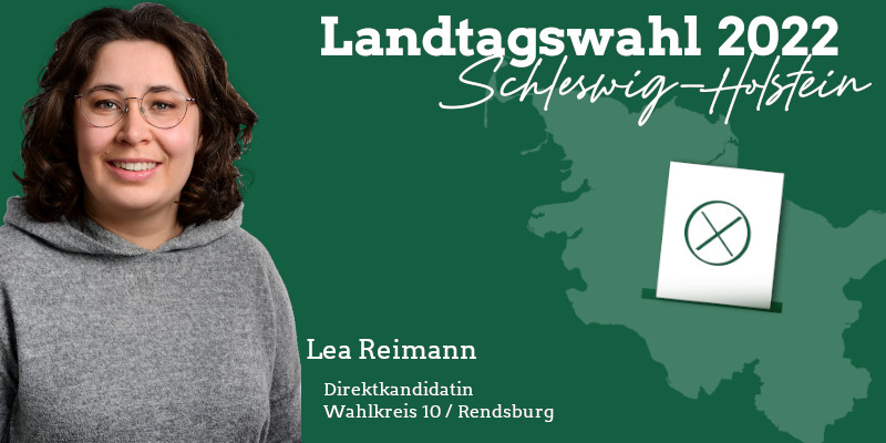 ich bin Lea Reimann, 27 Jahre alt, lebe in Büdelsdorf und kandidiere für BÜNDNIS 90/DIE GRÜNEN im Wahlkreis Rendsburg. Ich kandidiere um jungen Menschen eine Stimme zu geben, mich für Medienkompetenz für alle einzusetzen und Klimaschutz in der Region sowie in ganz Schleswig-Holstein voranzubringen.